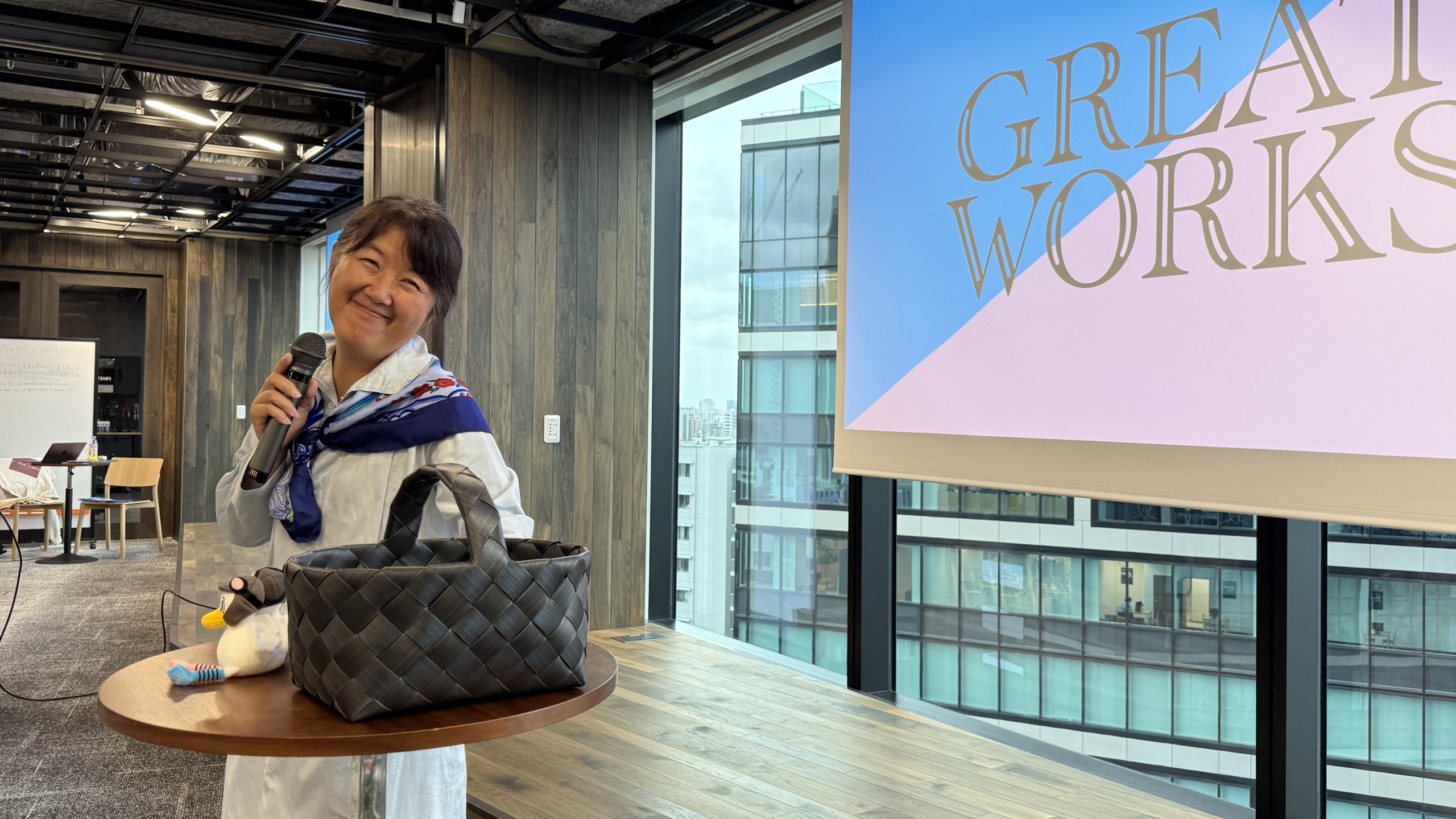 今回は、東京を拠点とする観光人として弊社CEO・山下が選ばれ、広島県の比治山女子高等学校と近畿大学附属広島中学校東広島校の生徒たち、総勢約60名を受け入れました。GREAT WORKSが手がける「ブランディング」の仕事に触れるワークショップを実施した上で、山下の人生遍歴や大切にしている価値観について語りました。若手メンバーのプランナー・根本とアシスタントプロデューサー・岩田も参加し、全体の企画から当日の進行サポートまでを担いました。
