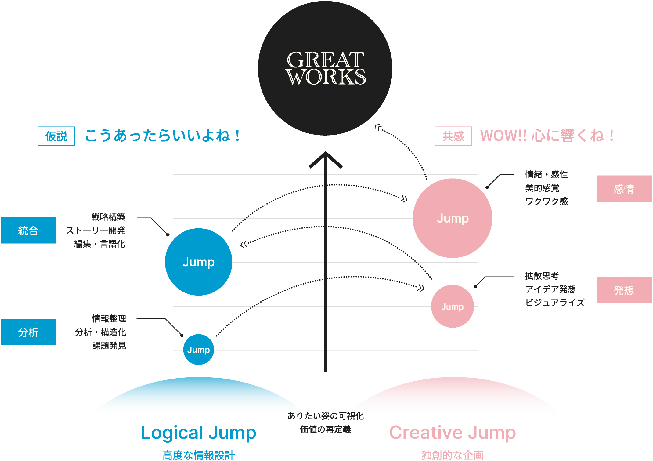 私たちは、ロジカルジャンプとクリエイティブジャンプの往復で、